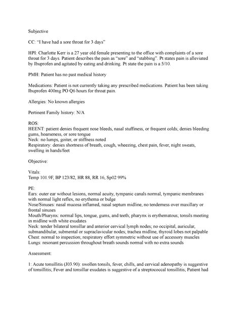 Read Online SORE THROAT SOAP NOTES EXAMPLE Doc